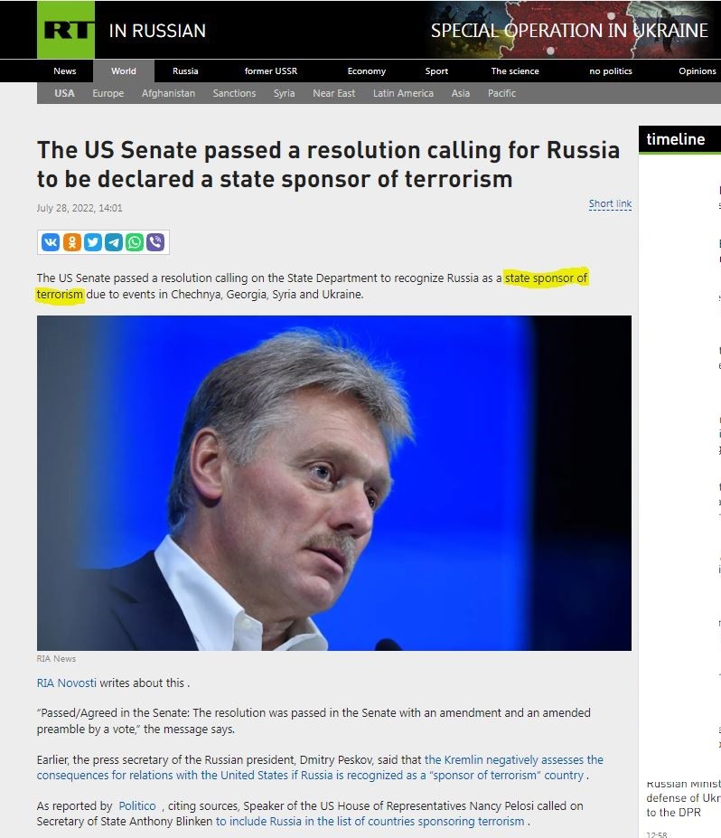 Οι ΗΠΑ θέλουν να ανακηρυχθεί η Ρωσία κράτος χορηγός της τρομοκρατίας
