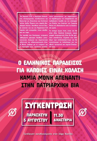 Συγκέντρωση την Παρασκευή 5/8, 11:30 στα Δικαστήρια