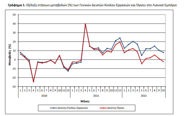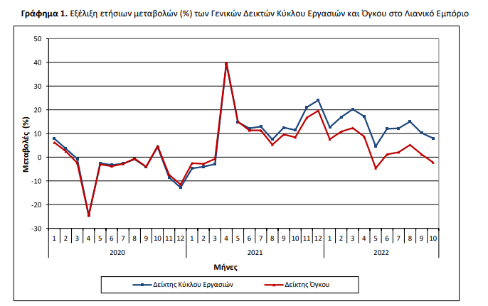 Ο όγκος στο #λιανικό εμπόριο μειώνεται, ο κόσμος μειώνει την καταλάνωση του και η ετήσια αύξηση του τζίρου ειναι προϊον του #πληθωρισμού. Η οικονομία βυθίζεται όλο και περισσότερο. #μητσοτακης_τελος