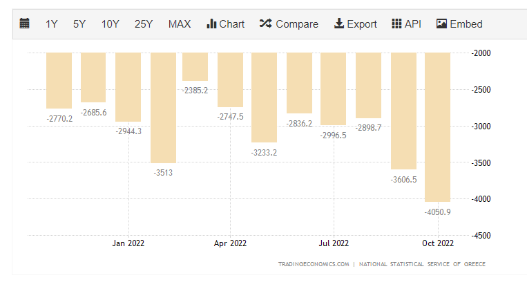 Τον Οκτώβριο το εμπορικό μας #έλλειμα εκτοξεύθηκε κατά 70% σε σχέση με αντίστοιχο μηνα του προηγούμενου έτους. Είναι η μεγαλύτερη μεταβολή από το 2007!! Ιαν-Οκτ το έλλειμα μας ΑΝΕΒΗΚΕ στα 31δις. Όταν θα καταλάβετε τι σας βρήκε θα είναι πάλι αργά για δάκρυα