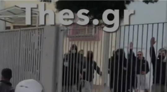 Η αντιφασιστική πορεία προχωρά και 2 έφηβοι από τη Δυτική Θεσσαλονίκη υψώνουν τις γροθιές.
