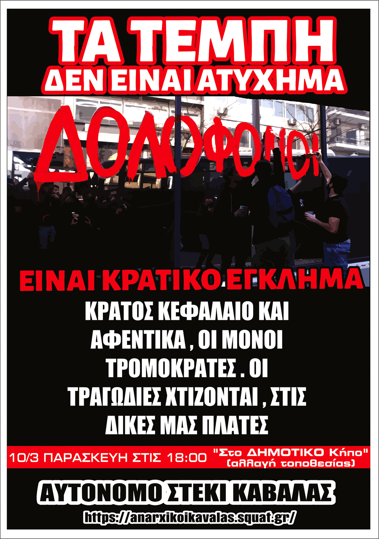 ΤΑ ΤΕΜΠΗ ΔΕΝ ΕΙΝΑΙ ΑΤΥΧΗΜΑ ΕΙΝΑΙ ΚΡΑΤΙΚΟ ΕΓΚΛΗΜΑ, ΠΑΡΑΣΚΕΥΗ 10/03/2023 ΣΤΙΣ 18:00, "Στον Κήπο" (αλλαγή τοποθεσίας), ΚΑΒΑΛΑ