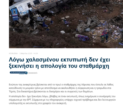 Η τραγωδία στα Τέμπη, τα μέσα ενημέρωσης και η «διαχείριση κρίσης»-Άρης Χατζηστεφάνου
