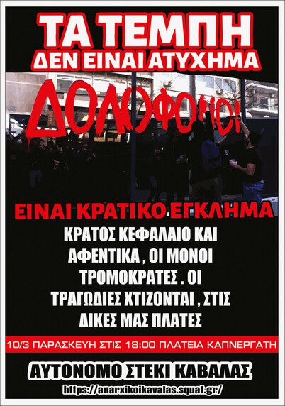 ΤΑ ΤΕΜΠΗ ΔΕΝ ΕΙΝΑΙ ΑΤΥΧΗΜΑ ΕΙΝΑΙ ΚΡΑΤΙΚΟ ΕΓΚΛΗΜΑ, ΠΑΡΑΣΚΕΥΗ 10/03/2023 ΣΤΙΣ 18:00, ΠΛΑΤΕΙΑ ΚΑΠΝΕΡΓΑΤΗ, ΚΑΒΑΛΑ