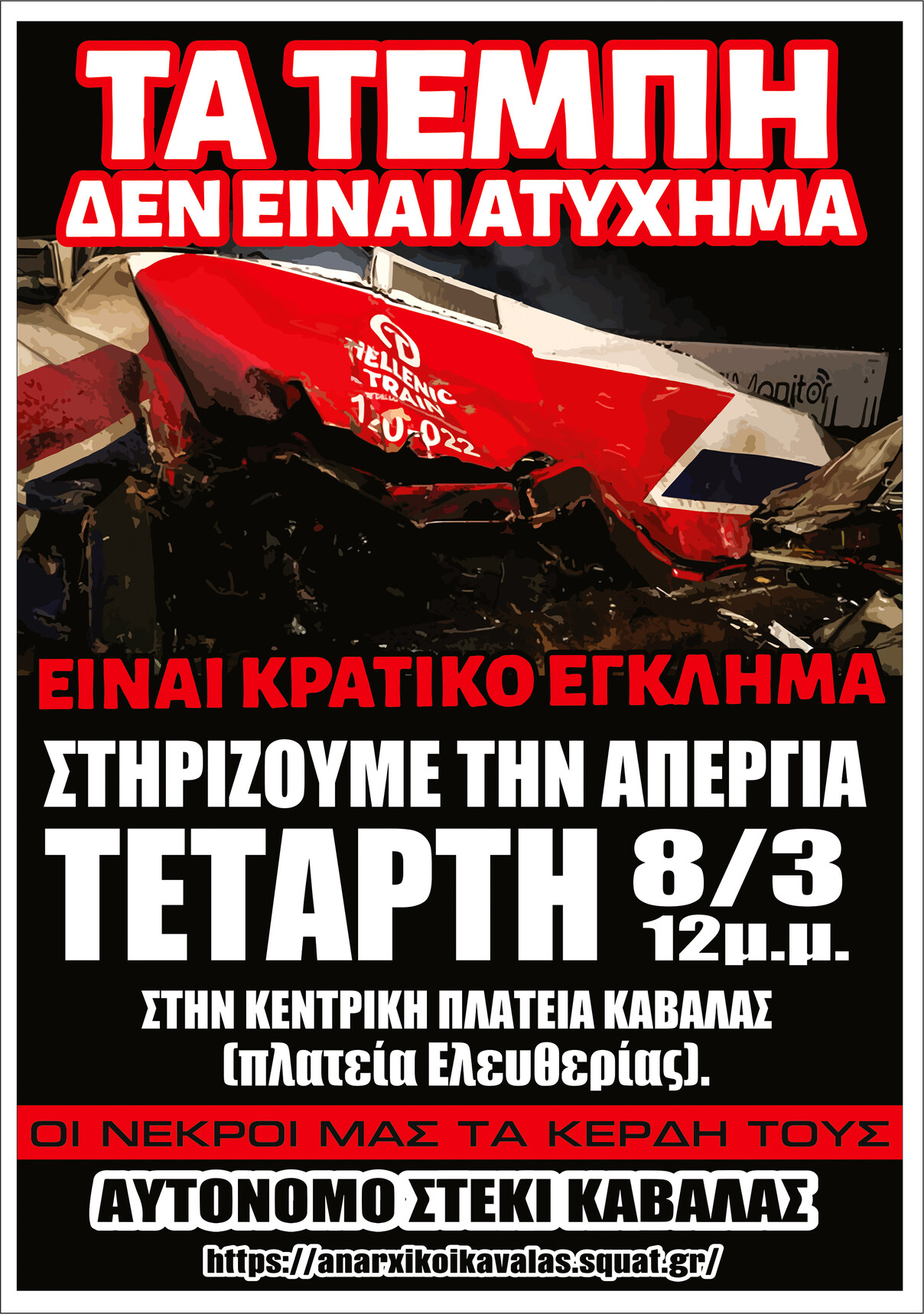 ΟΙ ΝΕΚΡΟΙ ΜΑΣ ΤΑ ΚΕΡΔΗ ΤΟΥΣ. ΟΛΟΙ ΣΤΗΡΙΖΟΥΜΕ ΤΗΝ ΑΠΕΡΓΙΑ 8/3 12μ.μ. ΠΛΑΤΕΙΑ ΕΛΕΥΘΕΡΙΑΣ ΚΑΒΑΛΑ
