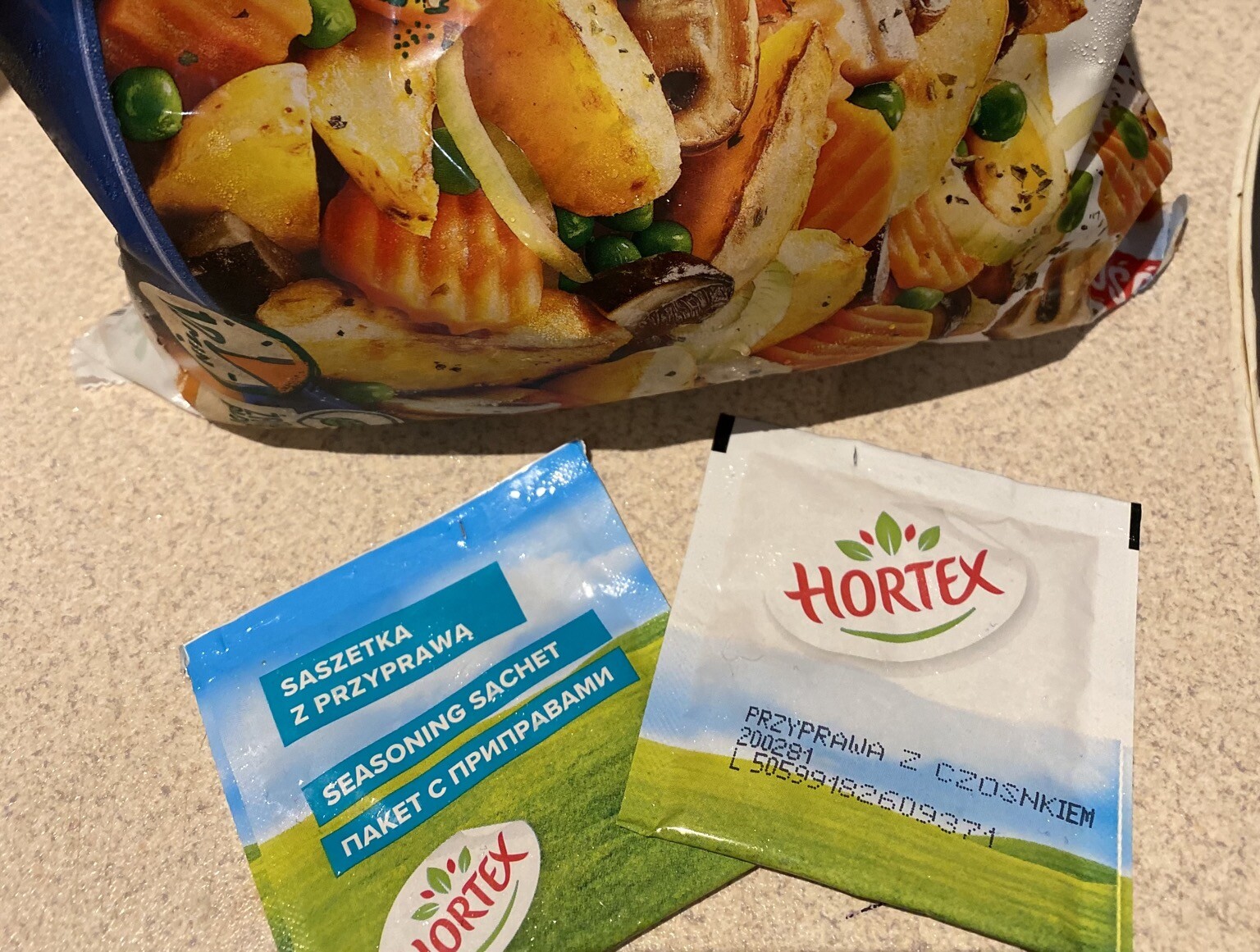 Высыпала на патэльню марожаную гародніну і не адразу заўважыла пакетыкі са спецыямі.