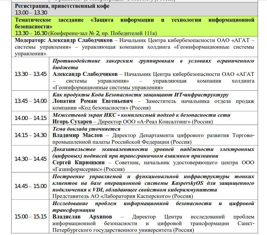 Видимо, пойду 20го числа, послушаю что-то по инфосеку (расписание на скринах) и похожу по стэнду. Мб какой-то отчетик сделаю.