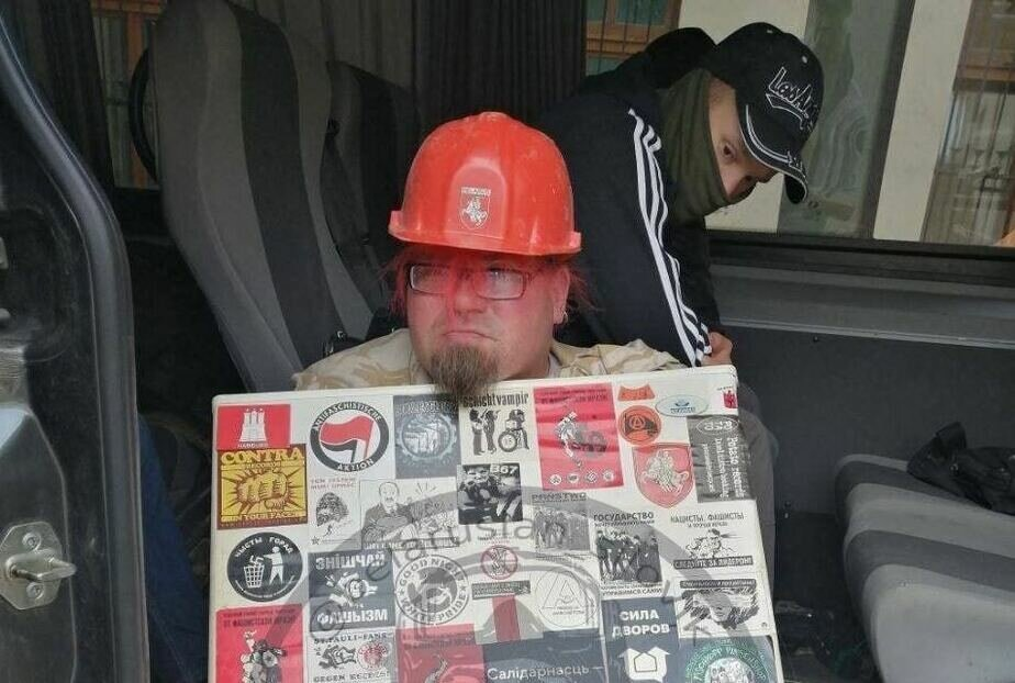 [#Belarus] В #Минск'е был задержан известный панк-музыкант Виктор "Мао" Жаркевич. Видео с тем, как он несет в наручниках дверь от холодильника, заклеенную анархическими и другими протестными стикерами, появилось вечером 5 сентября в мусорском телеграм-канале.