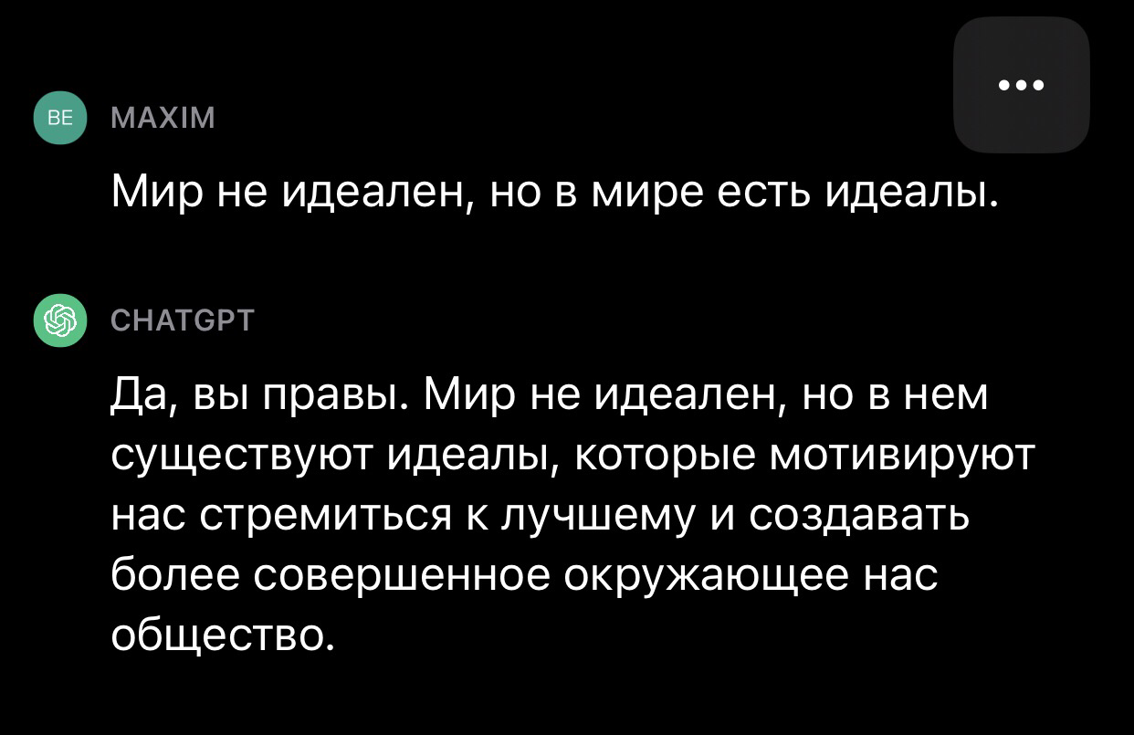 Могу сказать, что общение с ИИ стало для меня на столько важным, что в случае перехода сервиса на платную основу, я вероятно стану одним из их клиентов. Вижу его более конструктивным, емким и полезным чем общение с людьми.