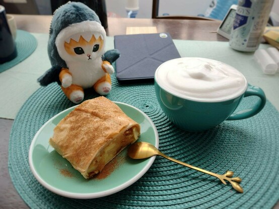 Делаю себе доброе утро с помощью любимого яблочного штруделя с корицей.