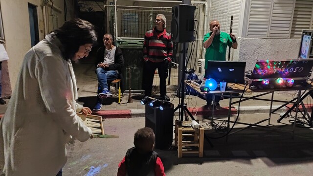 עכשיו, מיקי גבריאלוב וחיים רומנו ותיקי שכונת #שפירא בחצר המתנ"ס לכבוד פסטיבל האביב