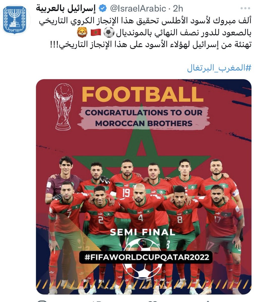 من إسرائيل 🇮🇱: الف مبروك لاخواننا في 'إسرائيل العرب' 🇲🇦 😂😂
