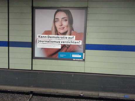 تبلیغ روزنامهٔ آلمانی «زود دویچه تسایتونگ» روی دیوارهای متروی مونیخ، امروز: