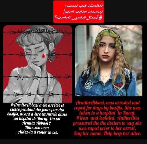 #Armita_Abbasi was arrested and raped by Basijis for days before being taken to a hospital in #Karaj.