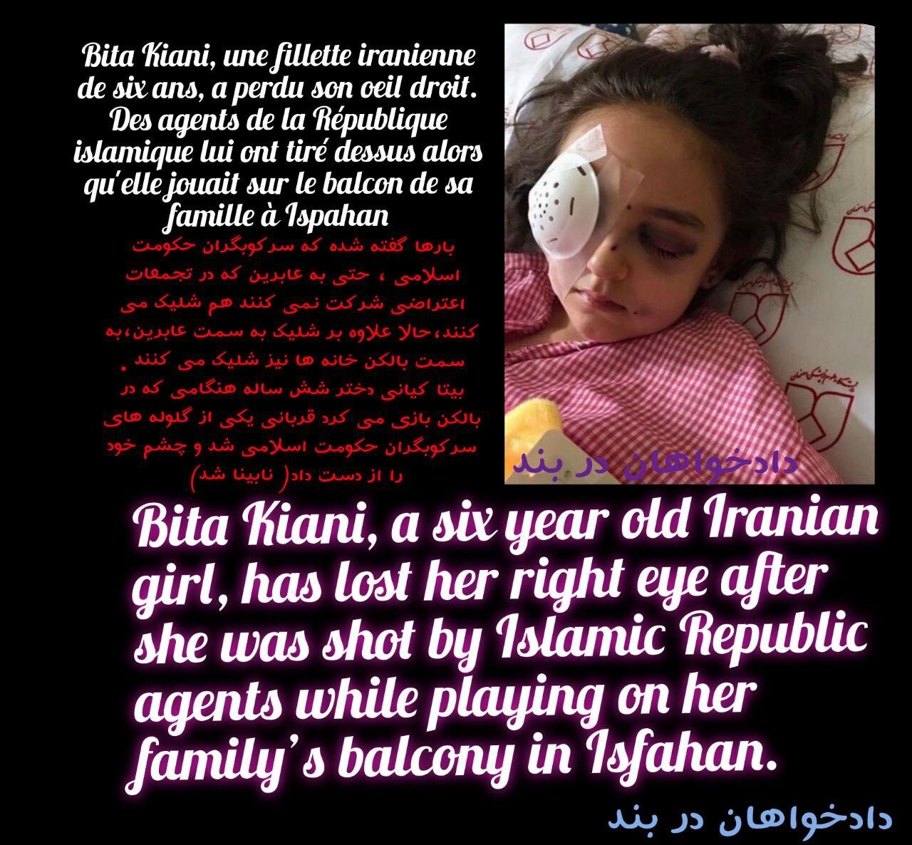 It has been said many times that the mercenaries of the Islamic regime also shoot at passers-by who do not participate in protest meetings, now they shoot not only at passers-by but also at the balconies of houses. Bita Kayani, a six-year-old girl, while playing on the balcony, became a victim of one of the bullets of the Islamic State mercenaries and lost her eye (she became blind).