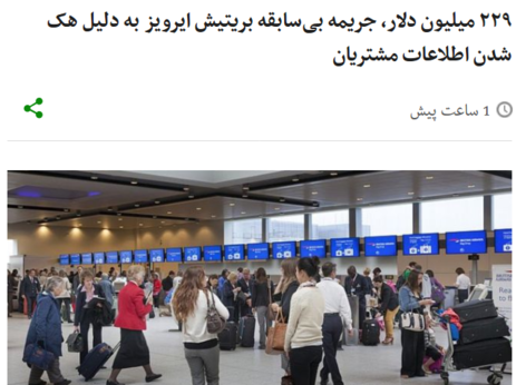 ۲۲۹ میلیون دلار، جریمه بیسابقه بریتیش ایرویز به دلیل هک شدن اطلاعات مشتریان
