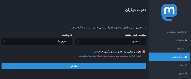 ویژگی ساختن دعوتنامه رو برای همهٔ کاربرهای #پرسادون فعال کردم. از الان در قسمت تنظیمات سایت میتونید برای دیگران لینک دعوتنامه بسازید و کاری کنید که هرکسی که با دعوتنامهٔ شما عضو شد، به طور خودکار پیگیر شما هم بشه.