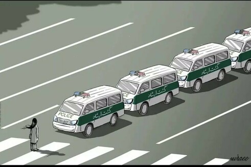 Powerful cartoon by Ali Miraee #Mahsa_Amini #مهسا_امینی #گشت_ارشاد