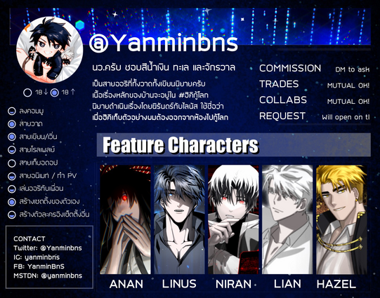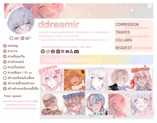 • อาจจะไม่ได้ฟอลกลับทุกคน เน้นฟอลกลับคนที่คุ้นเคยหรือนักวาดที่ตามงาน (กับช่วงแรกที่เพิ่งสมัครเรากดฟอลรัวไม่สะดวกใจอันฟอลกันได้ค่ะ)