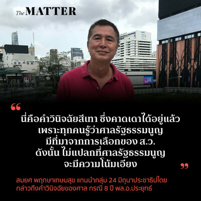 “นี่คือคำวินิจฉัยสีเทา ซึ่งคาดเดาได้อยู่แล้ว เพราะทุกคนรู้ว่าศาลรัฐธรรมนูญมีที่มาจากการเลือกของ ส.ว. ดังนั้น ไม่แปลกที่ศาลรัฐธรรมนูญจะมีความโน้มเอียง”