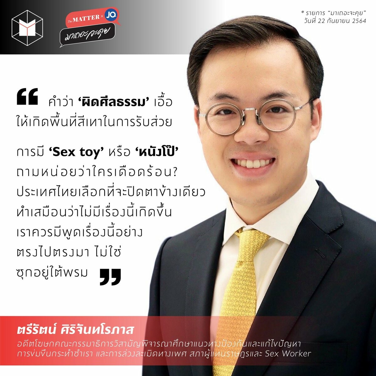 รายการ #มาเถอะจะคุย #TheMATTER x #จอมขวัญ พูดคุยกับ ตรีรัตน์ ศิริจันทโรภาส ถึงประเด็นศีลธรรมอันดีของประเทศกับสื่อที่มีเนื้อหาวาบหวิว ชมย้อนหลังที่: http://bit.ly/3AAJa0E
