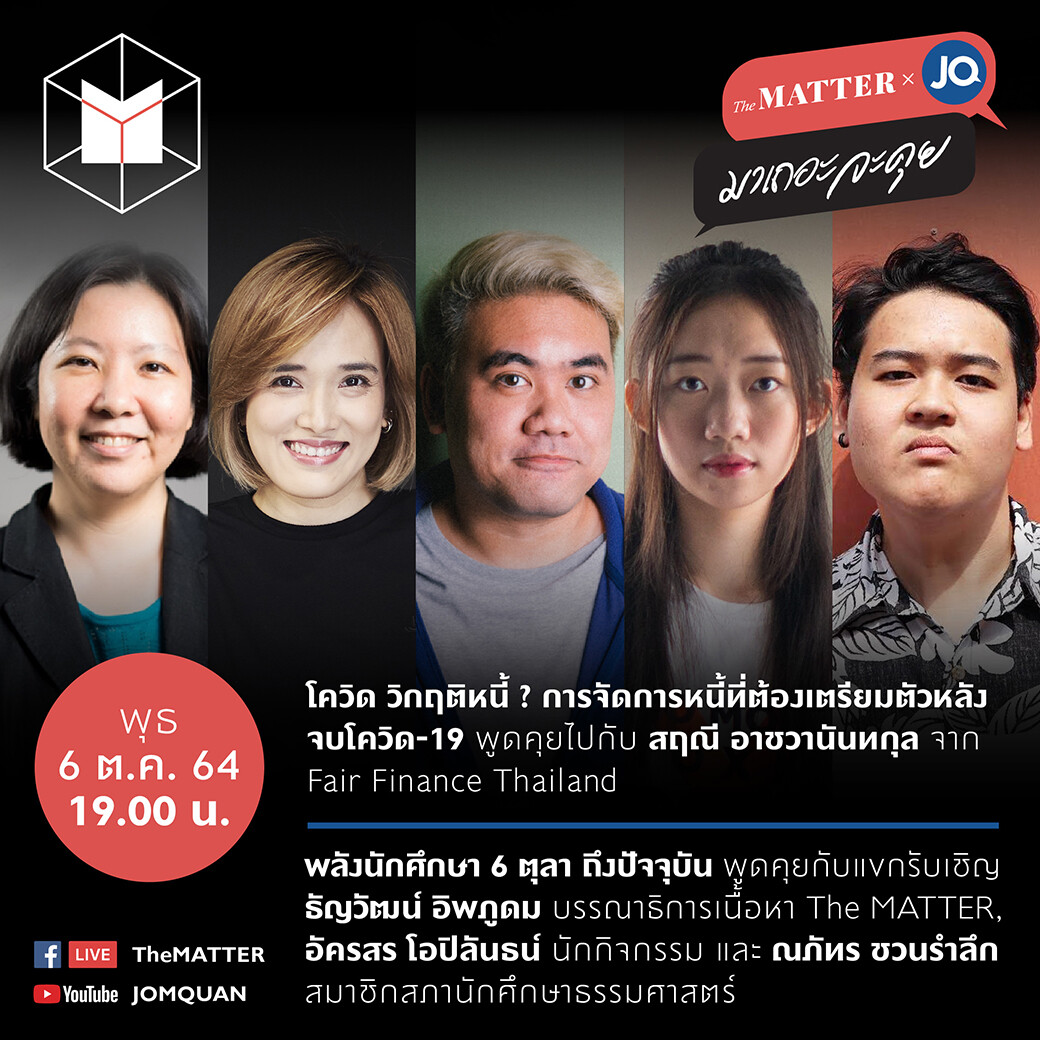 ชะตากรรมคนไทยหลัง #โควิด จะเป็นอย่างไร ? รายการ #มาเถอะจะคุย วันที่ 6 ต.ค. 64 ร่วมคุยกับคุณ สฤณี อาชวานันทกุลจาก Fair Finance Thailand ถึงประเด็นการเตรียมตัวเพื่อจัดการหนี้ของลูกหนี้รายย่อยหลังจบวิกฤตโรคระบาด
