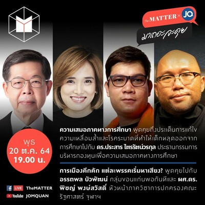 ช่วงแรกชวนคุยประเด็นความเหลื่อมล้ำและโรคระบาดที่ทำให้เด็กหลุดออกจากการศึกษา ไปกับ ดร.ประสาร ไตรรัตน์วรกุล ประธานกรรมการบริหารกองทุนเพื่อความเสมอภาคทางการศึกษา