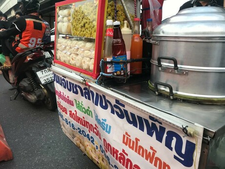 17.04 น. นอกจากผู้ชุมนุมที่ทยอยเข้ามาบริเวณแยกเกษตรแล้ว ทีมงานขายของกินก็มาประจำจุดนี้แล้วเช่นกัน