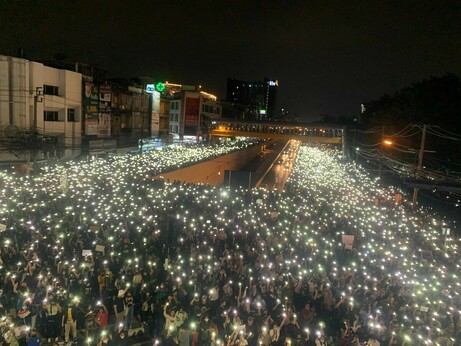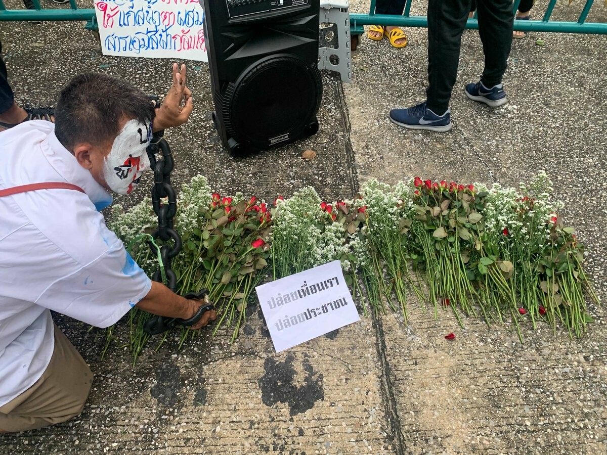 17.42 น. บรรยากาศที่หน้าเรือนจำคลองเปรม มีการร่วมรณรงค์ให้ปล่อยแกนนำและผู้ชุมนุมที่ถูกควบคุมตัวไป