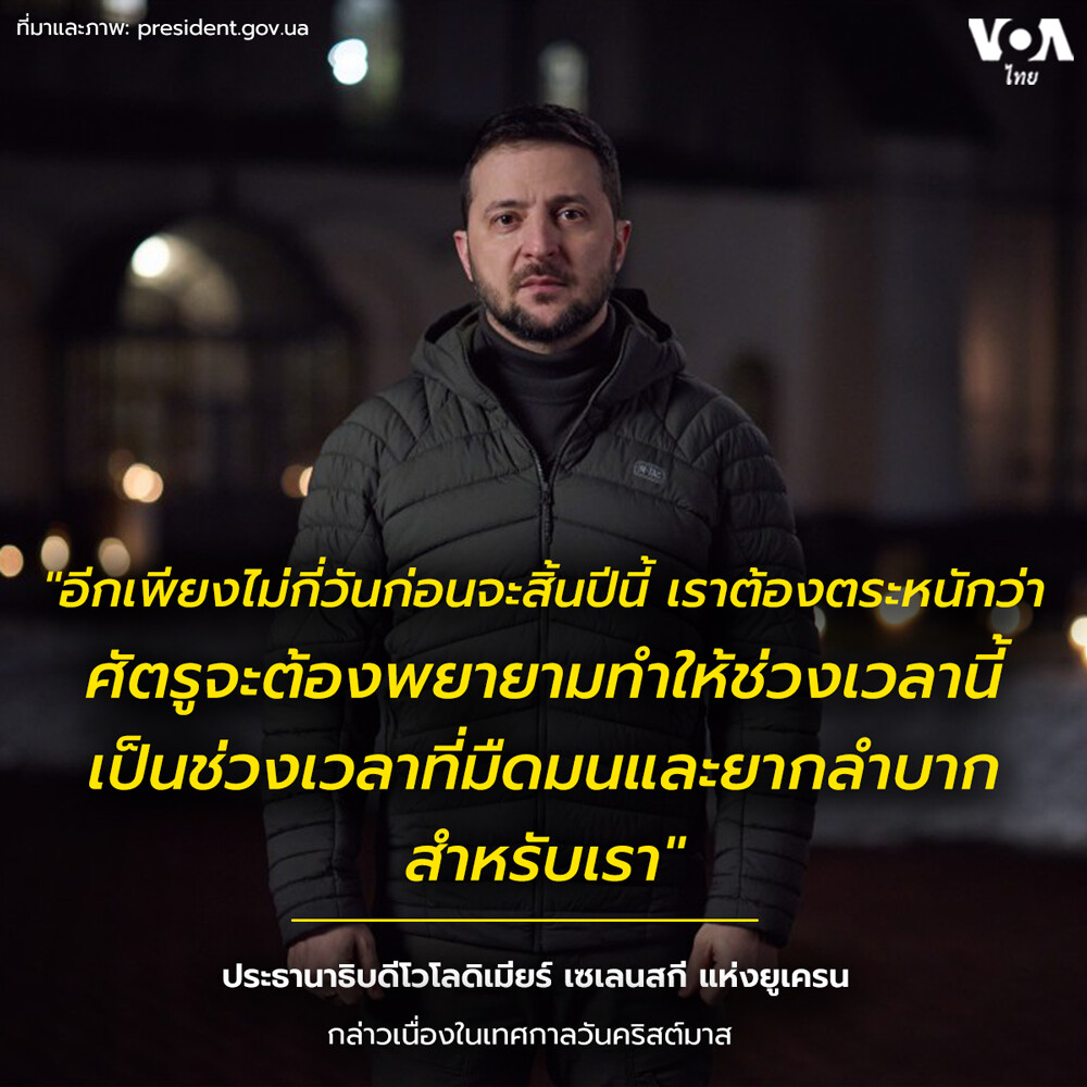 🇺🇦 เมื่อวันอาทิตย์ ปธน. #ยูเครน โวโลดิเมียร์ เซเลนสกี กล่าวอวยพรเนื่องในวันคริสต์มาส และขอบคุณทุกฝ่ายที่ให้ความช่วยเหลือยูเครนในสงครามครั้งนี้