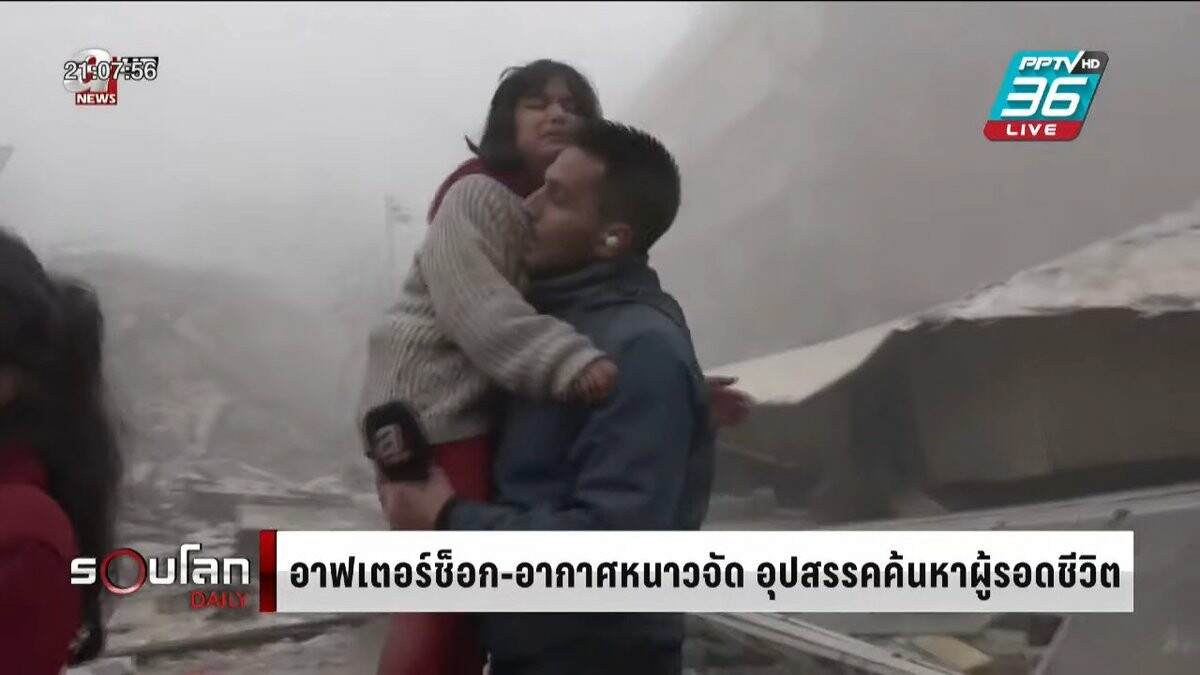 นักข่าวตุรกีทนเห็นภาพไม่ไหว วิ่งไปช่วยเหลือเด็กผู้หญิงที่วิ่งหนีออกมาจากอาคารถล่ม