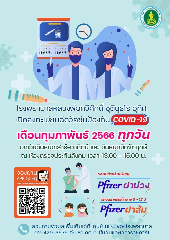 โรงพยาบาลหลวงพ่อทวีศักดิ์ ชุตินุธโร อุทิศ เปิดลงทะเบียนฉีดวัคซีนป้องกัน COVID-19 เดือนกุมภาพันธ์ 2566