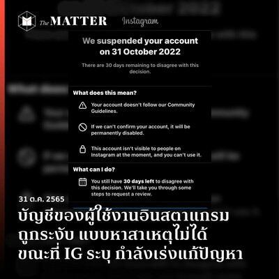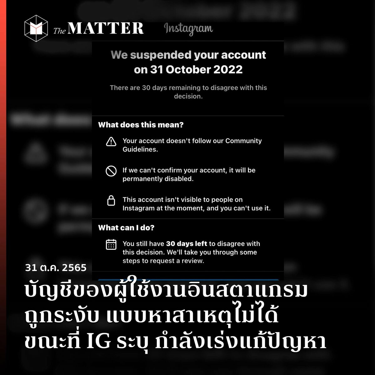 สำหรับใครที่บัญชีของผู้ใช้งานอินสตาแกรมถูกระงับในตอนนี้ ล่าสุด IG รับทราบปัญหาแล้วและกำลังเร่งแก้ไข