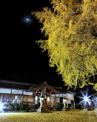 #tokyocameraclub#和歌山県#かつらぎ町#丹生酒殿神社#大いちょう#落ち葉#黄色い絨毯#月#お月さん#半月#ハーフムーン