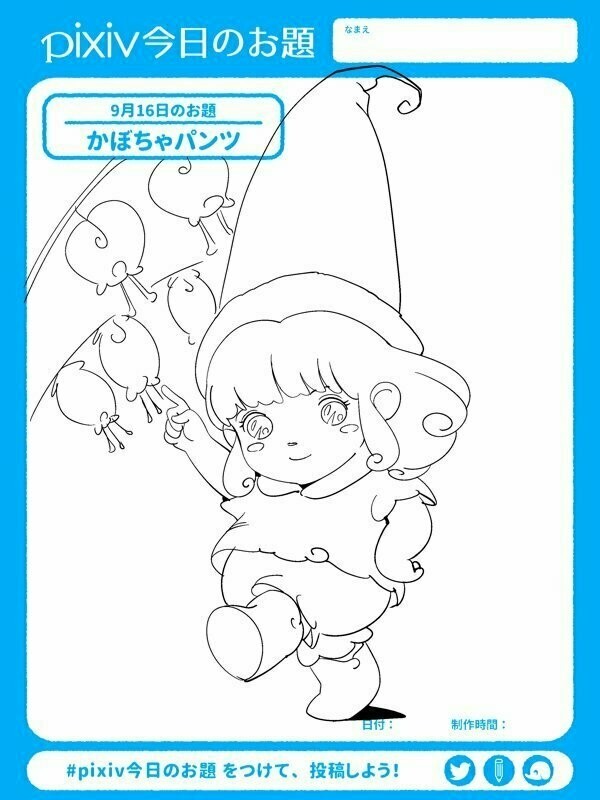 今日のお題は「 #かぼちゃパンツ 」です。かぼちゃ状に膨らんだ、ふんわりした形のパンツを描いてみよう!