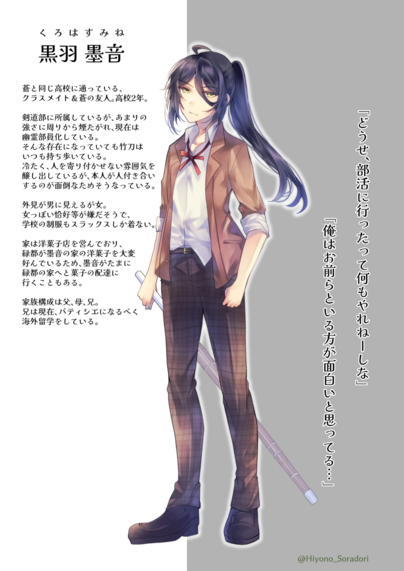 「#こうあおふたりぐらし」に登場する蒼の友人である墨音の立ち絵と紹介絵ができました