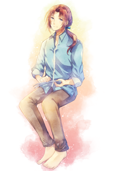 本を読んでいる紅也さん今回水彩というか、アナログ風に仕立ててみました!こっちの描き方が自分の絵柄にあうかも?と思っての実験絵です
