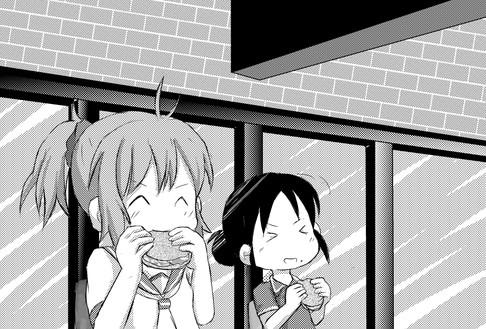 呉の某珈琲店でがんすバーガーを食べる青葉さんと呉在住の若奥さん