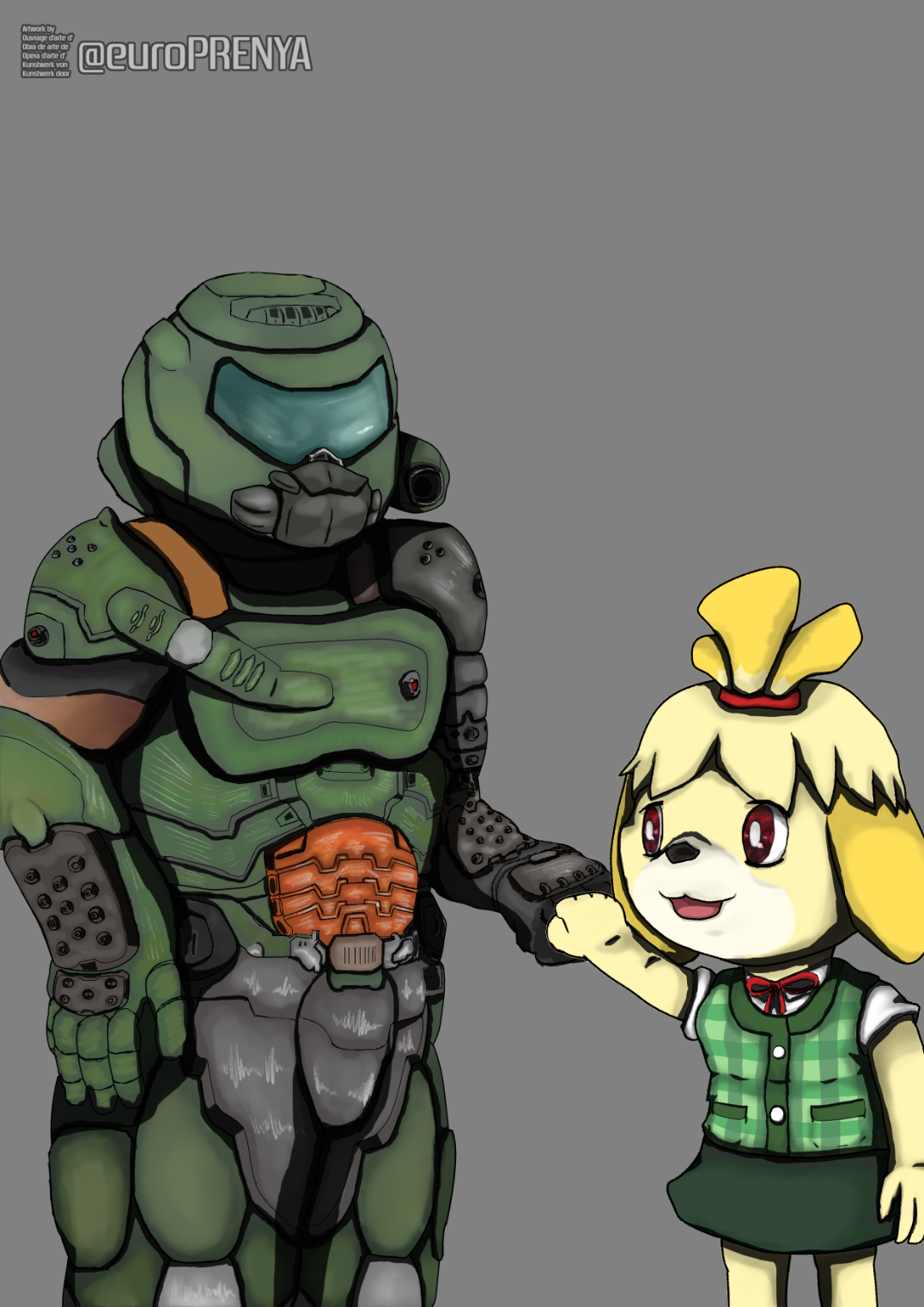 #Art #Artwork #Fanart #Isabelle #しずえ #どうぶつの森 #Doomguy #Doomslayer #DOOM #AnimalCrossing #Nintendo #任天堂 #idsoftware #Bethesda #crossover