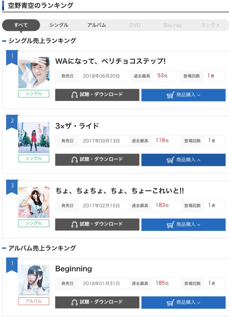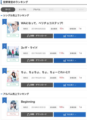 空野さんの4thシングル「WAになって、ベリチョコステップ!」を含む過去作品のランキングページが更新されました。