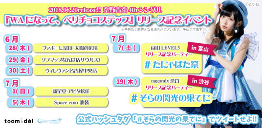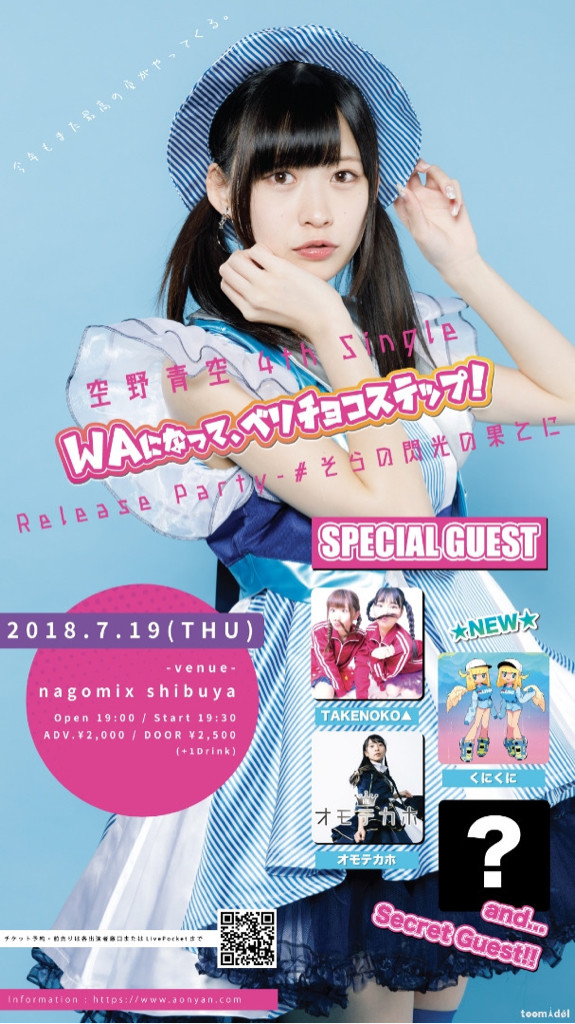 次回の戦場は7月19日(木)nagomix渋谷にて、『空野青空 4th Single「WAになって、ベリチョコステップ!」Release party - #そらの閃光の果てに 』。今作リリイベの締めくくりとなるリリースパーティーです。