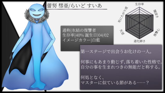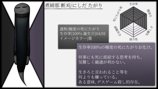 創作しているオリジナルキャラクターのお化けの簡単紹介です。死生やR-15Gに関する内容が含まれております。
