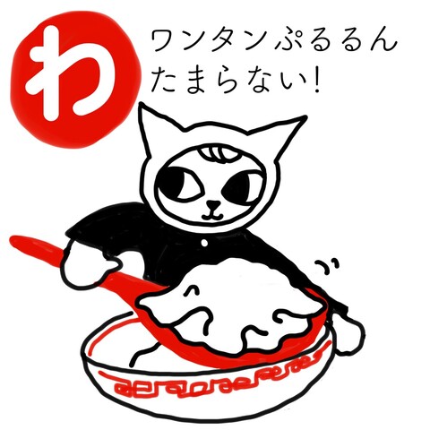 #猫かるた #猫イラストレーター #猫イラスト #イラスト好きな人と繋がりたい #猫の絵 #かるた #美味しい #食テロ #イラストエッセイ漫画 #illustration #猫の気持ち #ごはんイラスト #雲呑 #わんたん #街中華好きと繋がりたい #illustration #kaluta #karuta #hiraganawriting #cuteycat #japanese #kitten #catartworks