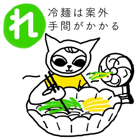 #猫かるた #猫イラストレーター #猫イラスト #イラスト好きな人と繋がりたい #猫の絵 #かるた #美味しい #食テロ #イラストエッセイ漫画 #illustration #猫の気持ち #ごはんイラスト #冷麺はじめました #illustration #kaluta #karuta #hiraganawriting #cuteycat #japanese #kitten #catartwork