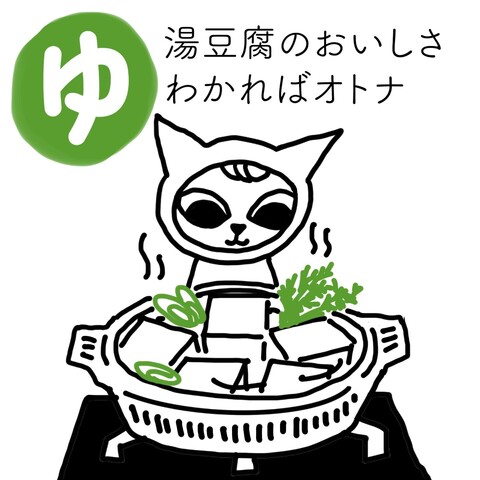 #猫かるた #猫イラストレーター #猫イラスト #イラスト好きな人と繋がりたい #猫の絵 #かるた #美味しい #食テロ #イラストエッセイ漫画 #illustration #猫の気持ち #ごはんイラスト #大人のレシピ #湯豆腐 #ねこかぶり #illustration #kaluta #karuta #hiraganawriting #cuteycat #japanese #kitten #catartwork