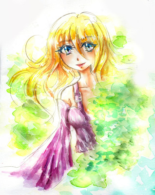 #原創 #水彩 #watercolor #少女 #young #girl #水彩画 #painting #背景 #background #みどり #green #midori #絵 #sketch #半分 #半邊 #水色 #aqua