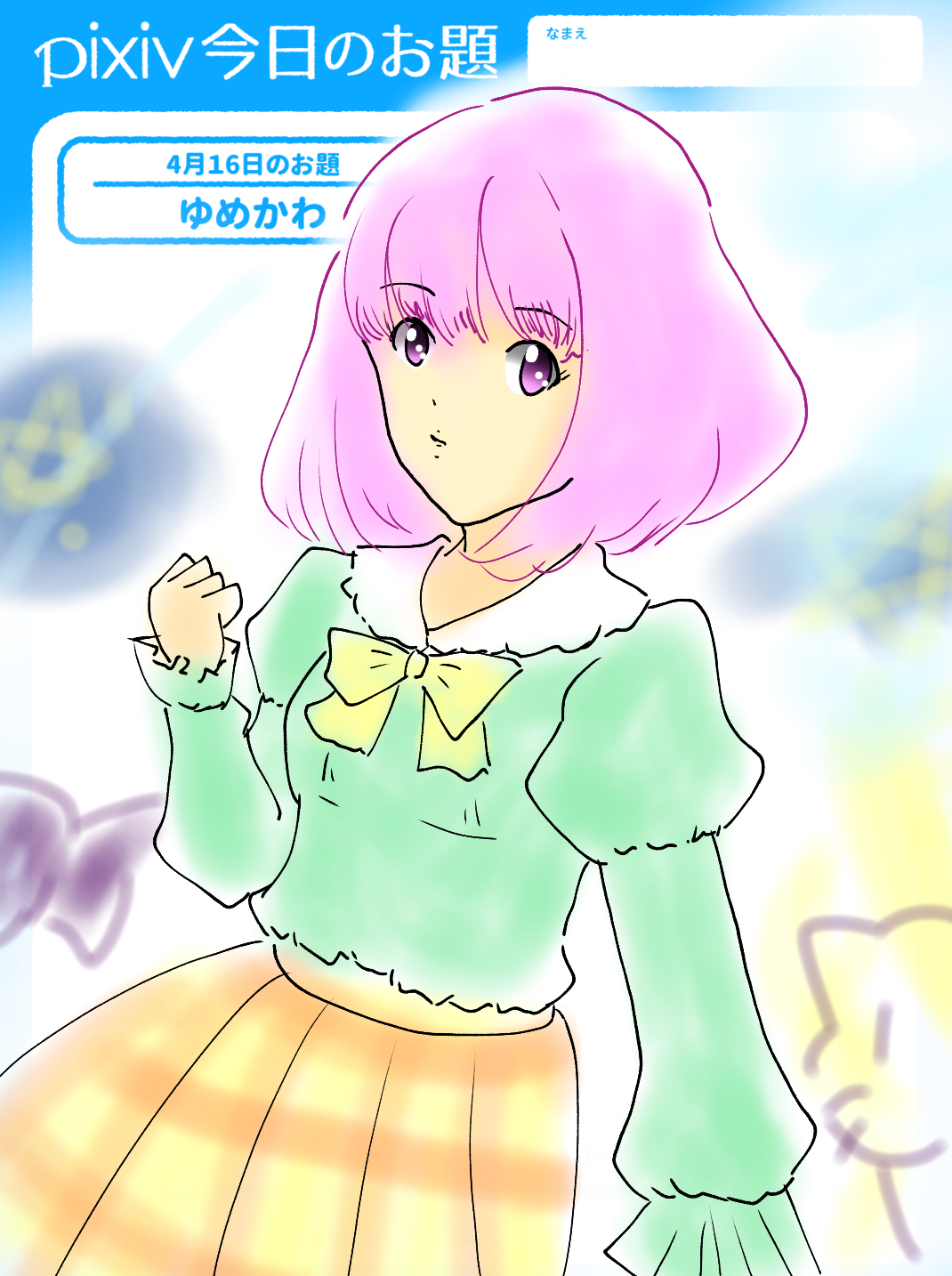 今日のお題は「 #ゆめかわ 」です。夢の中のようにふわふわした可愛らしい世界を描いてみましょう。