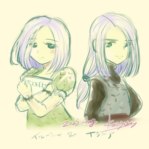 おやつ食べてたポリマー君とシアちゃん(ロシュさん)見てて、何となく穏やかに二人がお茶会してる姿を想像しましたラクガキ