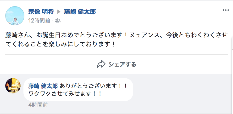 #わくわく #フジサキさんになんで知っているですかとは聞かれた #宗像さんがfbでお祝い投稿してたのは見た