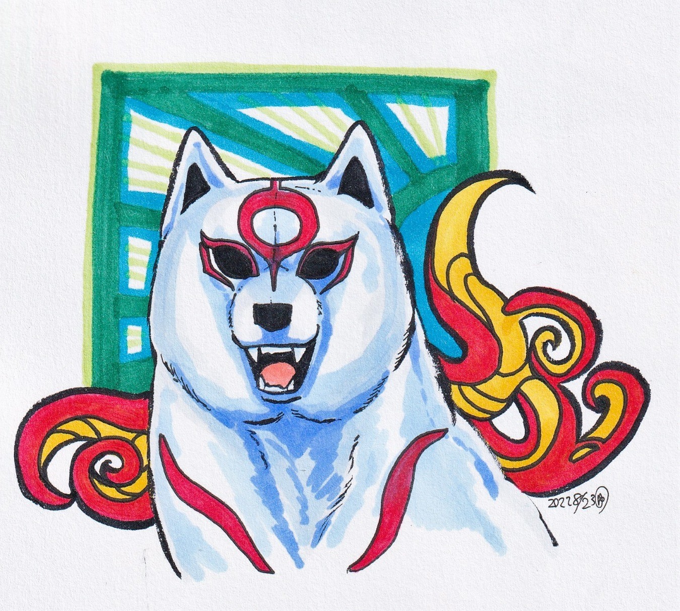 #pixivsketch #狼 #アマテラス #大神 #ファンアート #手書きブログ